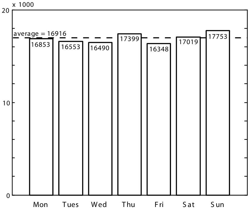 (Friday) and 17,753 (Sunday), and an average of 16,916 (Fig. 1). Our null hypothesis is