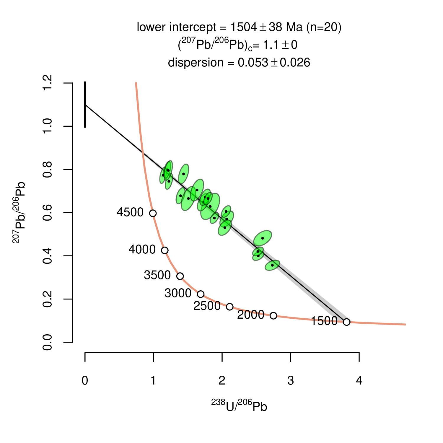 improved to 1504 ± 38 Ma by anchoring to [207Pb∕206Pb]0 = 1.1. Just like the