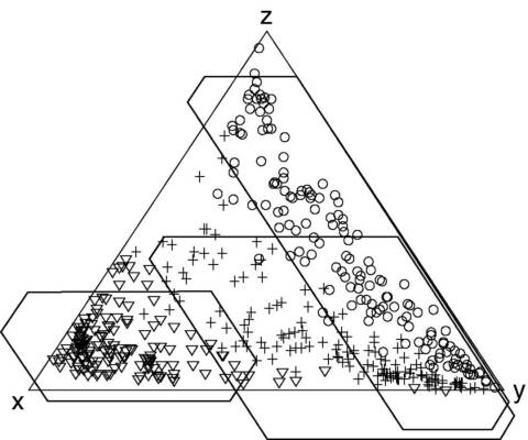 5.2 Ternary discrimination diagramsThe procedure for performing a discriminant analysis for ternary systems is very similar to the binary case. For